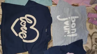 Conjunto deportivo para niña con distintas sudaderas. - sudadera azul con estampado love. - sudadera gris con estampado bonjour!. - Talla 8 años. Están sin estrenar cada uno 3€ Si se llevan más se hace precio.