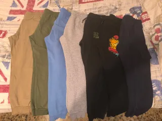Lote de ropa para niños de 7 a 8 años. - Incluye camisetas y pantalones. - 7 pantalones de chándal - 4 pantalones vaqueros - 9 camisetas de manga corta - 2 camisetas de manga larga (1 es térmica) - 4 jerseys - 5 sudaderas - 1 pijama de Spiderman - Variedad de diseños y colores.