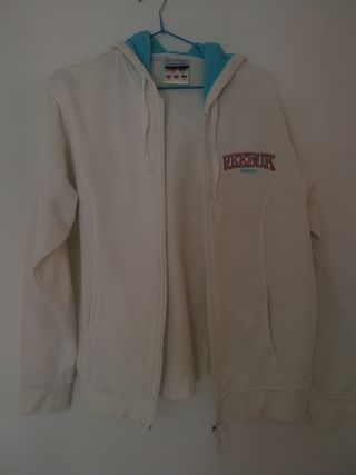 Sudadera Reebok original, color blanco, con logo bordado. ✅ Talla: [s] ✅ En muy buen estado, sin manchas ni desgaste. ✅ Perfecta para look retro o casual. 📦 Entrega en mano o envío por Wallapop