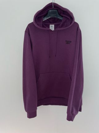 Sudadera con capucha de la marca Reebok en color morado oscuro . Es cómoda y suave al tacto. - Logo de Reebok bordado en el pecho. - Bolsillo tipo canguro. - Puños y bajo elásticos. - Retro ( Oversize : Se refiere a prendas intencionalmente más grandes para un look relajado y cómodo ) .