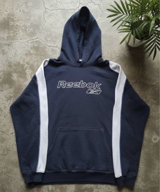 Sudadera vintage con el icónico logo de Reebok bordado en el pecho. Un diseño clásico que combina comodidad y estilo. - Diseño con franjas blancas en las mangas. - Capucha ajustable.