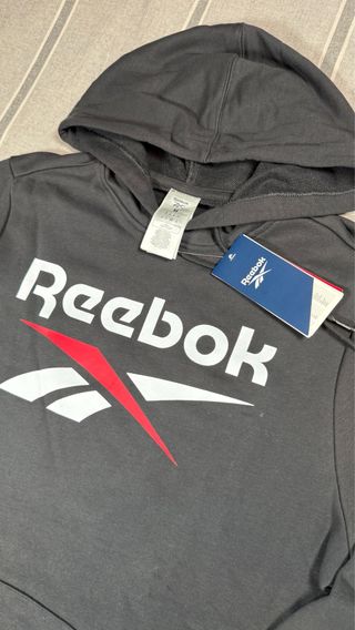 Sudadera con capucha de la marca Reebok, completamente nueva y con su etiqueta original. - Diseño con el logo de Reebok en el pecho. - Tejido suave y cómodo. - Capucha ajustable con cordones.