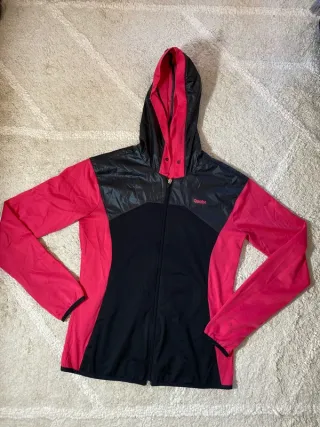 Sudadera deportiva con capucha, perfecta para entrenar o para un look casual. - Diseño bicolor en rosa y negro. - Capucha integrada. - Cierre de cremallera frontal.