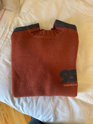Jersey de punto Reebok con un diseño moderno y deportivo. - Color principal naranja con detalles en gris. - Cuello redondo. - Mangas largas.