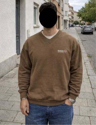 📏 Talla indicada: XL (MIRAR MEDIDAS) 📐 Medidas: * 63 cm de ancho de axila a axila * 70 cm de largo 👚 CARACTERÍSTICAS * Sudadera Reebok Classic Vintage para hombre, estilo retro y deportivo. * Cuello en forma de pico (V-neck), diseño poco común y muy original. * Logo Reebok BORDADO en la parte frontal y en la manga izquierda. * Confeccionada en 100% algodón, cómoda y transpirable. * Ideal para looks casuales, streetwear o vintage. ⚠️ IMPORTANTE – DEFECTO ‼️ Presenta manchas de color clarito en la manga derecha. ‼️ Revisar fotos para ver el estado real de la prenda. ☑️ Estado: Buen estado general (con defecto indicado)