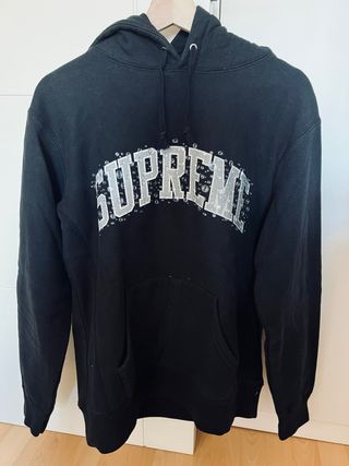 Sudadera con capucha de la marca Supreme. - Diseño con logo arqueado y efecto burbujas. - Bolsillo frontal tipo canguro. - Pocos usos.