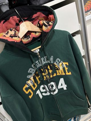 Sudadera con capucha y cremallera completa. - Diseño con logo SUPREME en la parte delantera. - Capucha ajustable con cordones. - Bolsillos frontales tipo canguro.