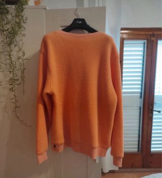Sudadera Supreme de color naranja con un diseño moderno y cómodo. - Tejido suave y cálido. - Logo de la marca bordado en el pecho.