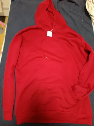 Sudadera con capucha de color rojo, ideal para mantener el calor. - Tejido suave y confortable. - Bolsillo frontal tipo canguro. - Cordones ajustables en la capucha.
