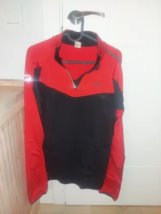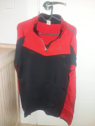 Sudadera térmica de manga larga con media cremallera. Ancho de axilas 52cm. Se encuentra en muy buen estado. - Diseño bicolor en rojo y negro. - Detalles reflectantes en las mangas. - Cuello redondo con cremallera.