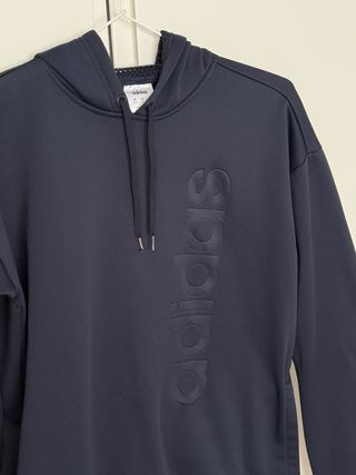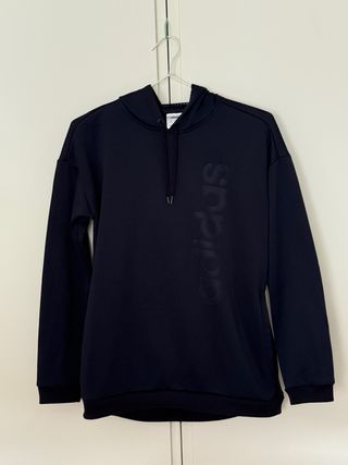 Sudadera Adidas Brilliant azul marino con capucha Adidas auténtica (modelo: EI5537) en talla XS. * Diseño Premium: Logotipo "adidas" grabado en relieve vertical en el pecho. * Tecnología ClimaWarm: Aislamiento térmico ligero y transpirable. * Tejido: Felpa francesa (French Terry) de alta calidad, muy suave al tacto y cómoda. * Capucha Especial: Interior forrado con tejido de rejilla (mesh), que mejora la ventilación y le da un aspecto deportivo muy top, ajustable con cordones. En perfecto estado, solo tiene un pequeño roce en el codo (foto)