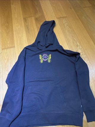 Sudadera con capucha de la marca Vans. Presenta un diseño con el logo de la marca en el pecho. Pone que es talla L (la que tengo y se puede ver que es algo justa), es más bien una M o una S oversized. - Diseño efecto desteñido. - Bolsillo canguro. Si tienes dudas de cualquier cosa del artículo, no dudes en preguntarme (medidas, más fotos,...). Precio negociable
