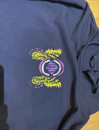 Sudadera negra con capucha de la marca Vans. Completamente nueva, nunca usada pero sin etiquetas. Dibujo mariposa en la parte trasera. Sigue a la venta en internet por 50€ - Estampado de mariposas y logo. - Capucha con cordones ajustables.