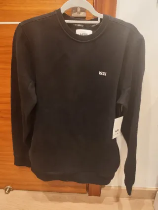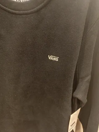 Sudadera Vans negra talla S (niño, aprox. 12-14 años) Sudadera Vans en negro, con logo en el pecho y bolsillo tipo canguro. En muy buen estado, suave y cómoda. Perfecta para uso diario. 60 cm de largo.