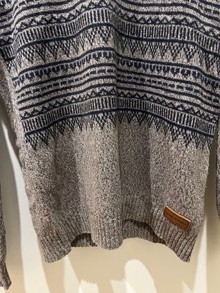 Jersey de manga larga con un diseño jacquard en la parte delantera. Es una prenda cómoda y versátil. - Cuello redondo. - Tejido de punto. - Detalle de etiqueta en la parte inferior.
