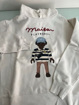 Sudadera con capucha de Zara, con un diseño divertido de Playmobil. - Estampado frontal de un personaje Playmobil. - Texto Maison Playmobil bordado. - Capucha con cordones.