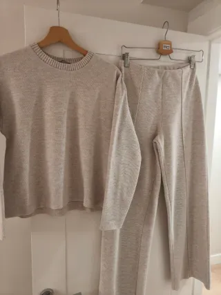 Conjunto de dos piezas de Zara. - Jersey de punto con cuello redondo. - Pantalón largo de punto con costuras delanteras.