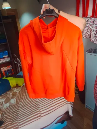 Sudadera compacta de manga larga con capucha. - Diseño liso. - Puños y bajo elásticos. Tiene un pequeño agujero en la parte de atrás casi imperceptible.