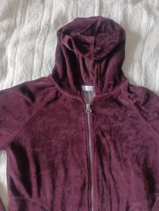 Sudadera con capucha de terciopelo. - Cierre de cremallera. - Bolsillos delanteros. - Puños y bajo elásticos. Pone L pero da poca talla.