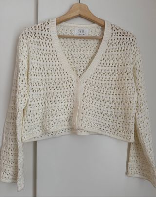Rebeca de zara de color crema de la talla M. Un buen fondo de armario. #zara #rebeca #colorcrema #beige #fondoarmario #fondodearmario #cardigan