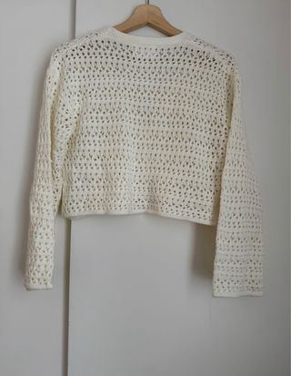Jersey de punto calado con un diseño moderno y ligero. - Diseño de crochet. - Manga larga. - Cuello en V.