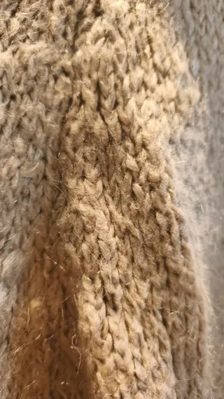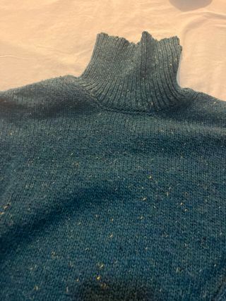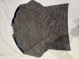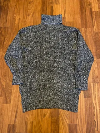 Jersey de punto grueso con cuello alto, en tonos grises y negros. Es talla M y está como nuevo.