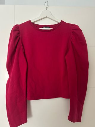 Sudadera de Zara, con un diseño moderno y femenino. - Mangas largas abullonadas. - Cuello redondo. - Tejido suave y cómodo.