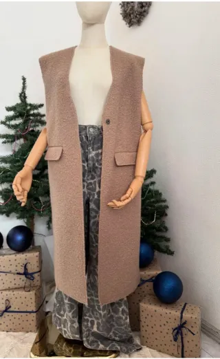 Chaleco largo de Zara en color beige, ideal para añadir un toque elegante a tu atuendo. - Diseño sin mangas. - Cuello en pico. - Dos bolsillos frontales. - Muy confortable, ideal para el invierno