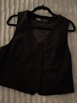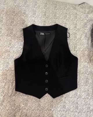 Chaleco de vestir de la marca Zara, sin estrenar. Diseño elegante y versátil. - Cierre de botones. - Bolsillos frontales. - Corte entallado.