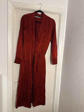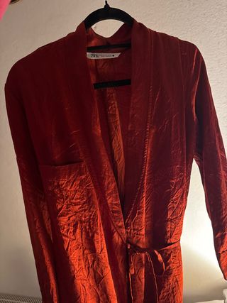Kimono largo de Zara, con un precioso acabado aterciopelado. - Diseño kimono. - Largo. - Tejido con textura. - Cinturón para anudar.