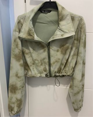 Sudadera cropped de Zara con un diseño en tonos verdes y olivas. Tiene una cremallera frontal, es cómoda y ligera. En la etiqueta indica que es una XXL pero yo soy una talla S y me queda perfecta como veis en las fotos. • Ancho de hombros: 45cm • Largo: 30 cm • Largo de las mangas: 55cm Si necesitas más información no dudes en escribirme 😊💬 Abierta a ofertas! #zara #chaquetacropped #casual