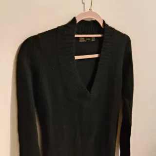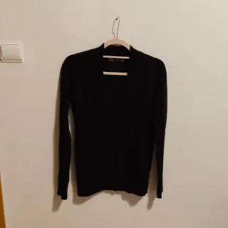 Jersey de punto fino con cuello de pico. Una prenda básica y versátil. Diseño de punto con el cuello en V pronunciado. Manga larga. Perfecto para el invierno. Está en perfecto estado
