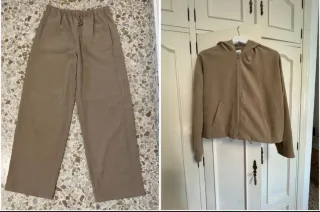 Conjunto de dos piezas de Zara. - Pantalón largo de corte ancho. - Chaqueta con capucha y cremallera frontal. Impecable. Se pueden combinar con otras prendas. De esta temporada. Color actual. Talla S. Da talla.