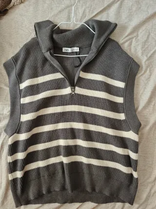 Chaleco de punto Zara rayas beige y gris