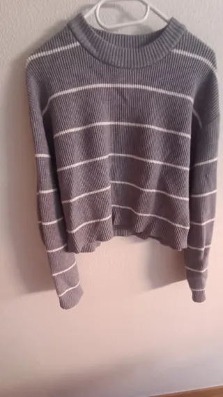Jersey de punto con un diseño de rayas horizontales. - Diseño de rayas finas. -Es una 13-14, pero yo uso una S y me queda estupendo. Está nuevo.