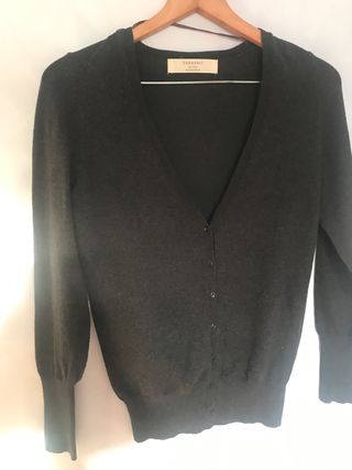 Rebeca de punto fino con cuello en V y cierre de botones. - Manga larga. - Puños y bajo acanalados. - Detalle de botones frontales.