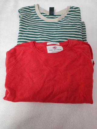 De manga larga. Uno es rojo y el otro a rayas verdes. Talla 3-4 años. 108 cm