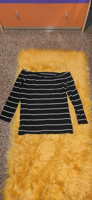 Jersey a rayas de mujer. Cuello redondo. Medidas: Altura 57 cm, Pecho 41 cm, Cintura 39 cm, Hombros 37 cm. Talla S. Creo que es de Zara o Stradivarius. Venta en Villajoyosa y Alicante.