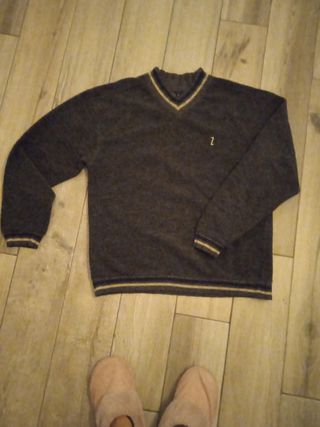 jersei de lana 100% azul oscuro con cuello de pico.Excelente estado ,nuevo prácticamente y tacto muy suave.Muy abrigado.