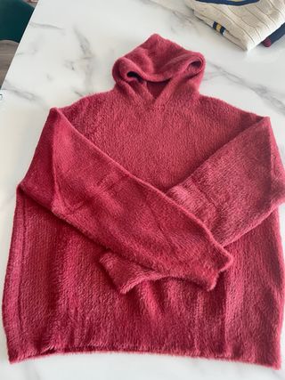 Jersey de Zara con capucha en color teja. Su tejido es suave y agradable al tacto. - Diseño con capucha. - Manga larga. - Tacto peluche.
