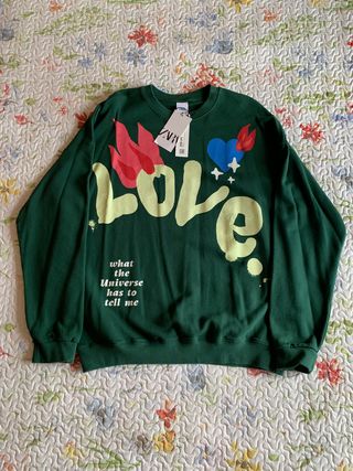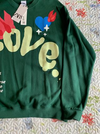 Zara crewneck dark green "abstract love" (T. M)
