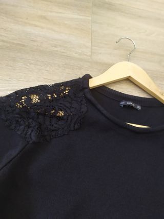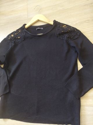 jersey de hilo, negro de Zara talla M, sin estrenar, con adornos de encje en los hombros