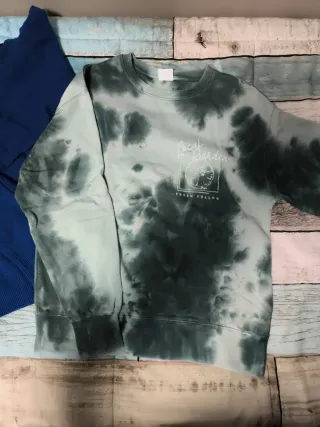 Jersey de punto azul para chico de 12 años, ideal para el día a día de Índigo Bluez y sudadera verde estilo manchado con dibujo en espalda de Zaea