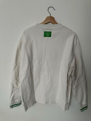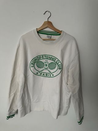 Sudadera blanca con estampado de club de tenis. - Diseño con logo L'EUROPE TENNIS CLUB PARIS y raquetas. - Cuello redondo. - Puños y bajo con detalles de rayas verdes.