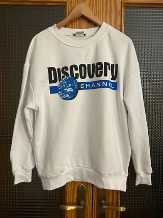 Sudadera blanca con el logo de Discovery Channel de Zara En perfecto estado sin usar casi