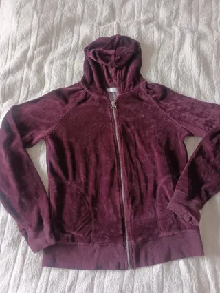 Sudadera con capucha de terciopelo. - Cierre de cremallera. - Bolsillos delanteros. - Puños y bajo elásticos. Pone L pero da poca talla.