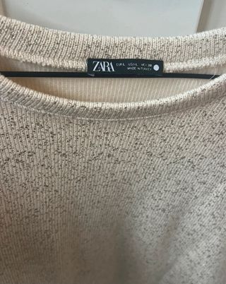 Jersey de Zara con un diseño moteado y detalles brillantes. - Manga larga. - Cuello redondo. - Tejido suave.