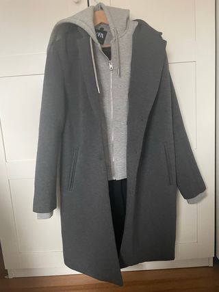 Abrigo largo con capucha, ideal para un estilo casual. - Diseño moderno y versátil. - Cierre de cremallera. - Bolsillos laterales. nuevo se puede quitar el efecto sudadera con los botones y quedar solo e abrigo