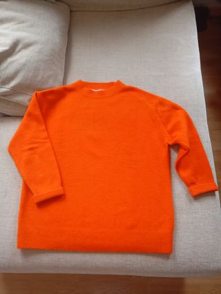 Jersey de punto de tacto suave en color naranja vibrante. Su corte oversize lo hace muy cómodo y versátil. - Cuello redondo. - Manga larga. - Bajo y puños de canalé.