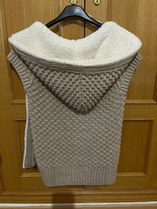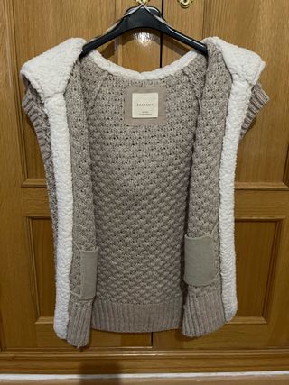 Chaleco de punto de Zara Knit con forro interior de borreguito. - Diseño sin mangas. - Cuello redondo. - Textura de punto. - Detalle de bolsillos útiles. - Broches de madera.